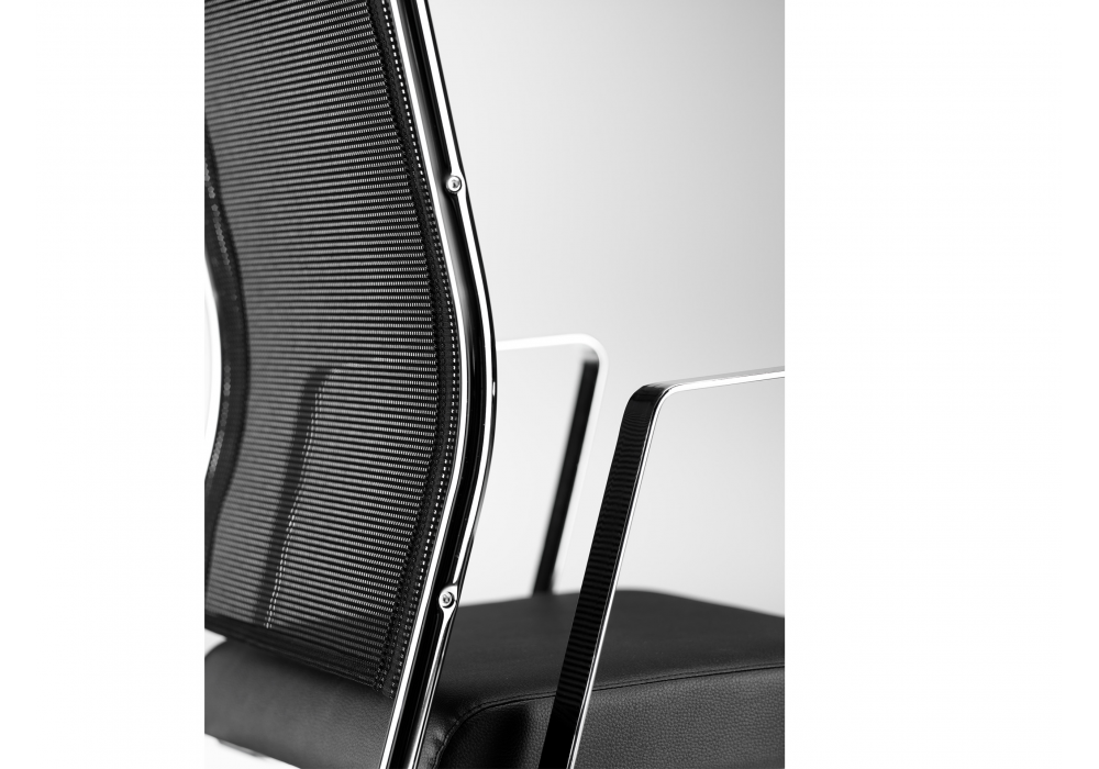 Syncronet conçu par R&D Sitlosophy pour Sitlosophy est un fauteuil avec assise en contreplaqué pressé, dossier en acier chromé avec maille portante et accoudoirs fixes en acier chromé, réglables en hauteur, avec coussin coulissant en polypropylène. Rembourrage en mousse de polyuréthane souple recouverte de différents cuirs, éco-cuirs ou tissus.