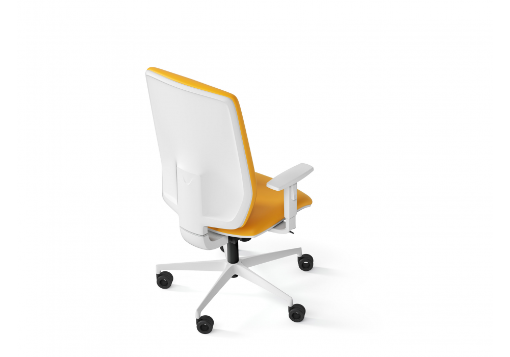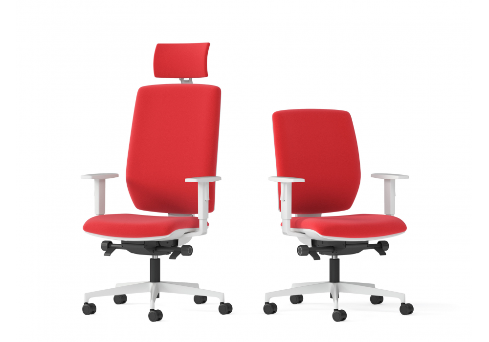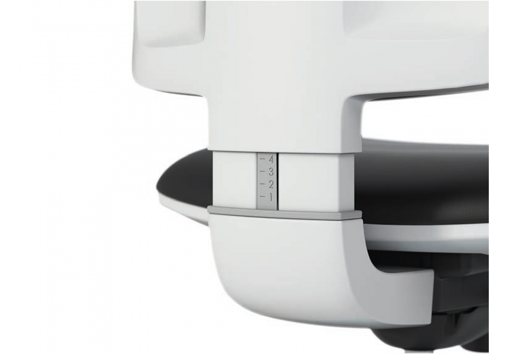 Mirai White conçu par R&D Sitlosophy pour Sitlosophy est un fauteuil avec assise en contreplaqué pressé, dossier en polypropylène renforcé, rembourrage en mousse et revêtement en tissu ou éco-cuir. L'appui-tête est réglable en hauteur et en inclinaison.
