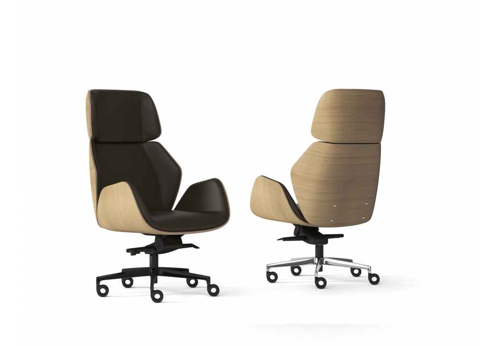 Haiku Wood conçu par R&D Sitlosophy pour Sitlosophy est un fauteuil avec coque en lego de chêne verni naturel et revêtement en différents cuirs, tissus ou éco-cuirs.