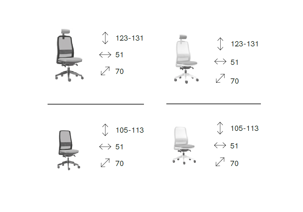 | Dimensions | 51 x 70 x H 123-131 cm; 51 x 70 x H 105-113 cm. |