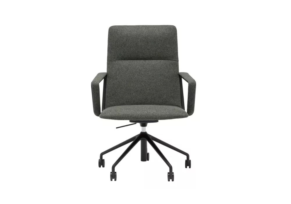 Capri Executive conçu par Piergiorgio Cazzaniga pour Andreu World est un fauteuil avec dossier disponible en 3 hauteurs différentes, rembourré et recouvert de divers tissus, cuirs ou simili cuirs. Les bases disponibles sont : base pivotante 4 branches en aluminium à retour automatique et finition en aluminium poli blanc ou noir, base centrale en aluminium à 5 roues, pivotante et réglage pneumatique de la hauteur.