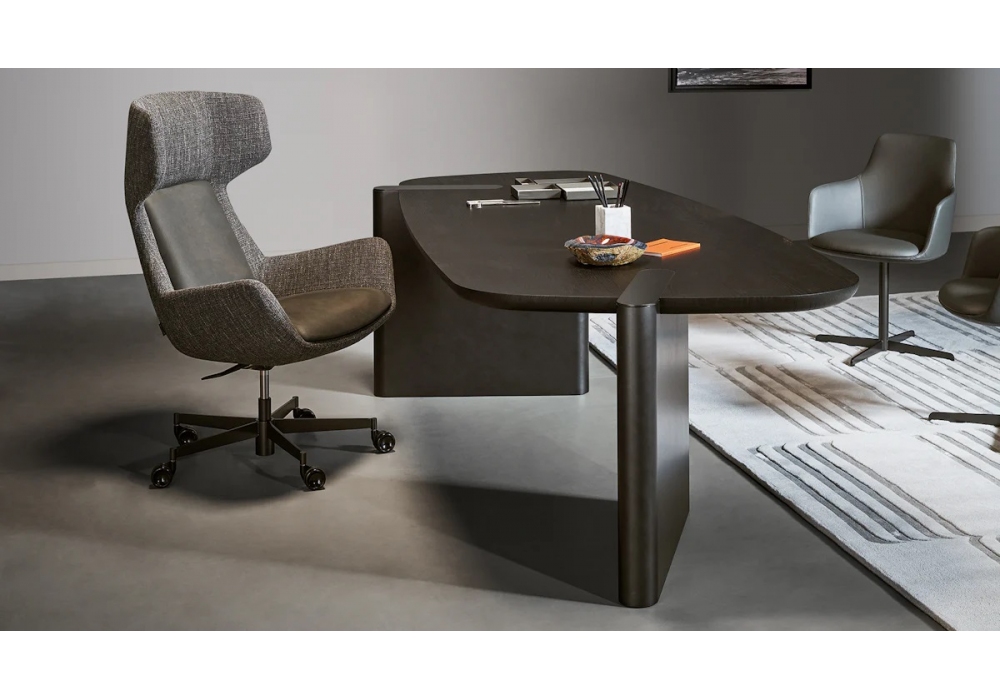 Newton conçu par Bonaldo Lab pour Bonaldo est un fauteuil de bureau avec structure en acier, assise et dossier rembourrés avec revêtement en tissu ou cuir, également disponible dans la version bicolore et bi-revêtement, assise en tissu et coussins avant en cuir. Hauteur d'assise réglable.
