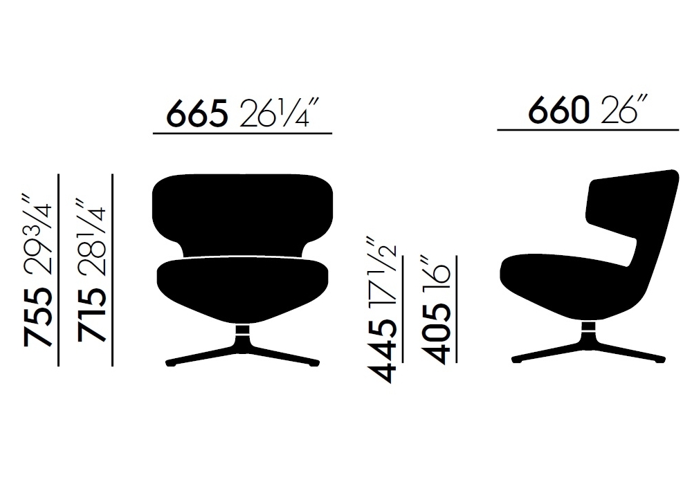 Petit Repos ajoute une chaise basse de salon à la famille de chaises par Antonio Citterio pour Vitra. Petit Repos dispose d‘une connexion flexible arrière intégré, permettant à la personne assise de se reposer et de s‘enfoncer dans le fauteuil pour encore plus de confort. La chaise club à fi ère allure dans les lieux publics ainsi que dans la maison.
