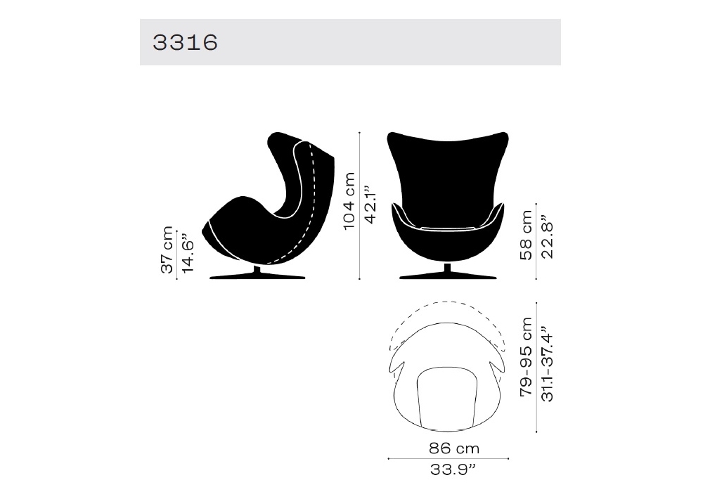 Egg conçu par Arne Jacobsen pour Fritz Hansen est un fauteuil pivotant entièrement recouvert de tissu ou de cuir. Base à quatre branches en aluminium poli satiné ou peint par poudrage. Disponible en différentes finitions.