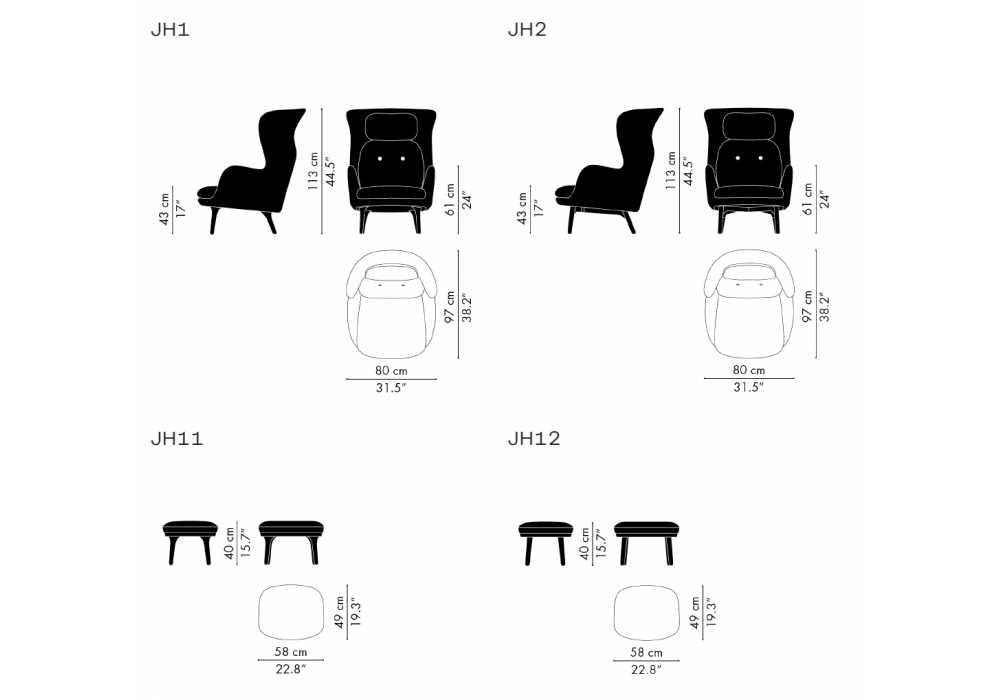Ro conçu par Jaime Hayon pour Fritz Hansen est un fauteuil avec pieds en aluminium brossé ou en chêne massif laqué transparent et revêtement en tissu ou cuir. Disponible avec ou sans repose-pieds dans la même finition que le fauteuil.