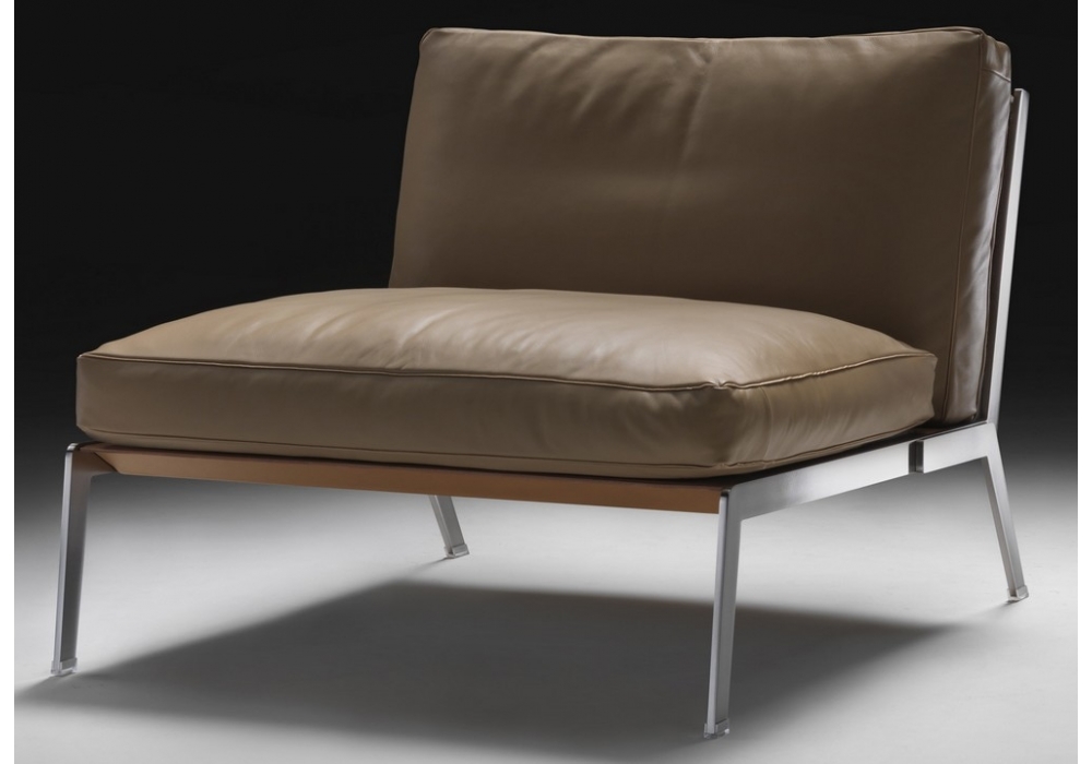 Happy conçu par Antonio Citterio pour Flexform est un fauteuil en métal, revêtement en cuir avec matelas en dacron. Dossier en métal et cordon en cuir tressé. Coussins d'assise et de dossier en plume avec support interne en matériau indéformable. Revêtement déhoussable en tissu ou en cuir. Disponible en différentes finitions.
