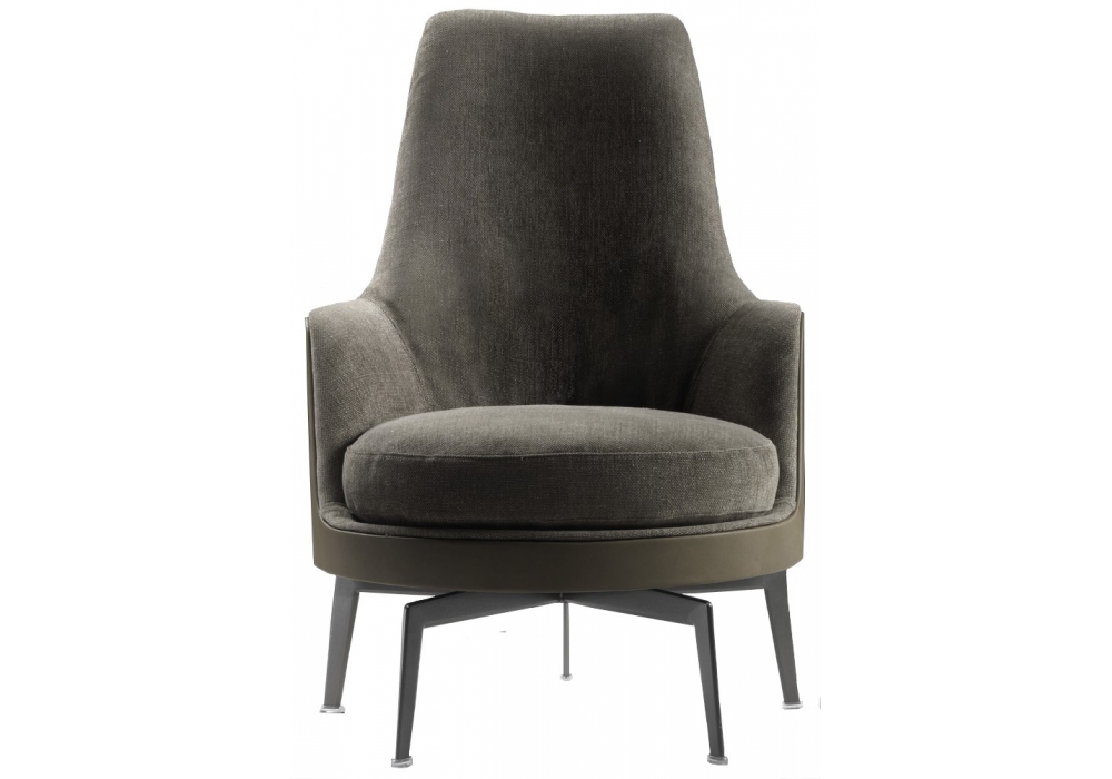 Guscioalto Soft is a turning metal base armchair designed by Antonio Citterio for Flexform. Frame in rigid polyurethane and dacron. Base in metal. Seat cushion down-filled with resilient inner core. Upholstery fabric or leather covers.