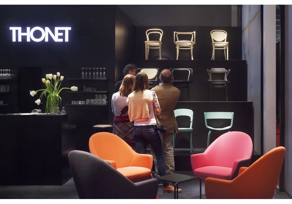 S 832 conçu par Emilia Becker pour Thonet est un fauteuil avec structure de base ronde en acier inoxydable brossé et pieds en plastique. Rembourrage de l'assise, du dossier et de la coque extérieure en tissu, cuir ou cuir.