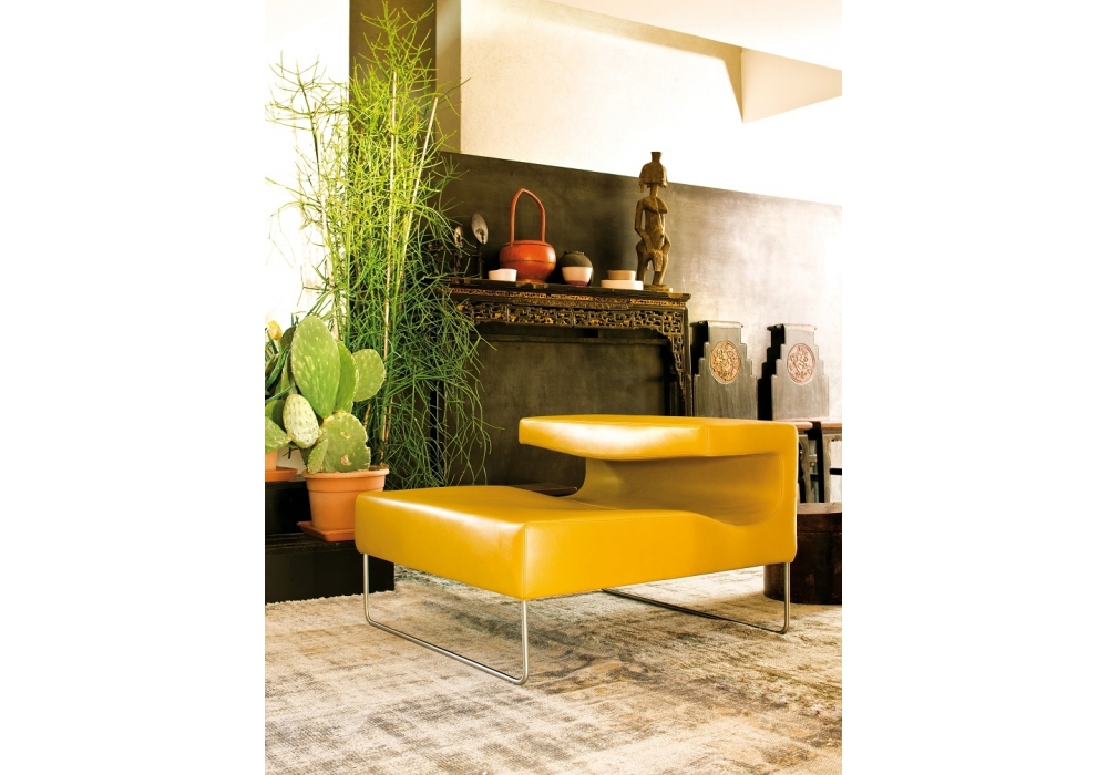 Lowseat conçu par Patricia Urquiola pour Moroso est un fauteuil en polyuréthane expansé à froid avec structure interne en acier. Pieds traîneaux en tube d'acier inoxydable. Revêtement en différents tissus ou cuirs.