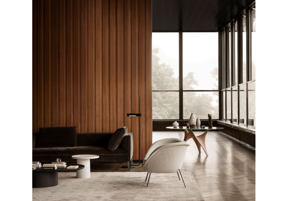 D.154.2 conçu par Gio Ponti pour Molteni&C est un fauteuil conçu pour l'un des projets les plus précieux de Gio Ponti, la villa des collectionneurs Planchart à Caracas (1953-57). Aujourd'hui, le fauteuil, qui est comme une coque accueillante, a une coque rigide en polyuréthane, une contre-coque en polyuréthane souple et un coussin, et est rembourré dans la gamme de tissus Molteni & C, avec la possibilité de différencier les éléments.
