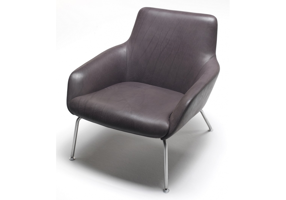 Reader designed by Piergiorgio & Michele Cazzaniga for Living Divani Living Divani is an armchair with steel frame embedded in cold-expanded polyurethane foam with Visco-soft “Xtra-pur” insert and seat support in cross-woven, coated rubber elastic straps. Covering in needle punched, resinated, nonwoven polyester fibre, bonded onto a polyamide velveteen backing. Fixed base in matt satined AISI 304 stainless steel or in steel painted with epoxy powders in black or gunmetal grey.