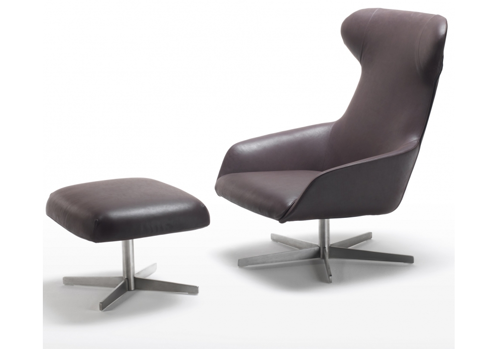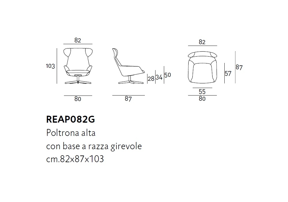 Reader designed by Piergiorgio & Michele Cazzaniga for Living Divani is a bergère with steel frame embedded in cold-expanded polyurethane foam with Visco-soft “Xtra-pur” insert and seat support in cross-woven, coated rubber elastic straps. Covering in needle punched, resinated, nonwoven polyester fibre, bonded onto a polyamide velveteen backing. Swivelling base in matt satined AISI 304 stainless steel or in steel painted with epoxy powders in black or gunmetal grey. Fabric or leather upholstery, the fabric version only is fully removable by zippers and Velcro fastenings. Seat depth 57cm.