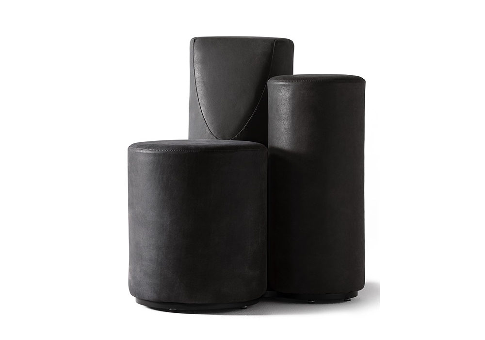 B.tri conçu par Bruno Rainaldi pour Opinion Ciatti est un fauteuil déconstruit composé de deux ou trois cylindres rembourrés de différentes hauteurs, reliés par une base en acier noir. Rêvetement disponible en différents tissus ou cuirs.
