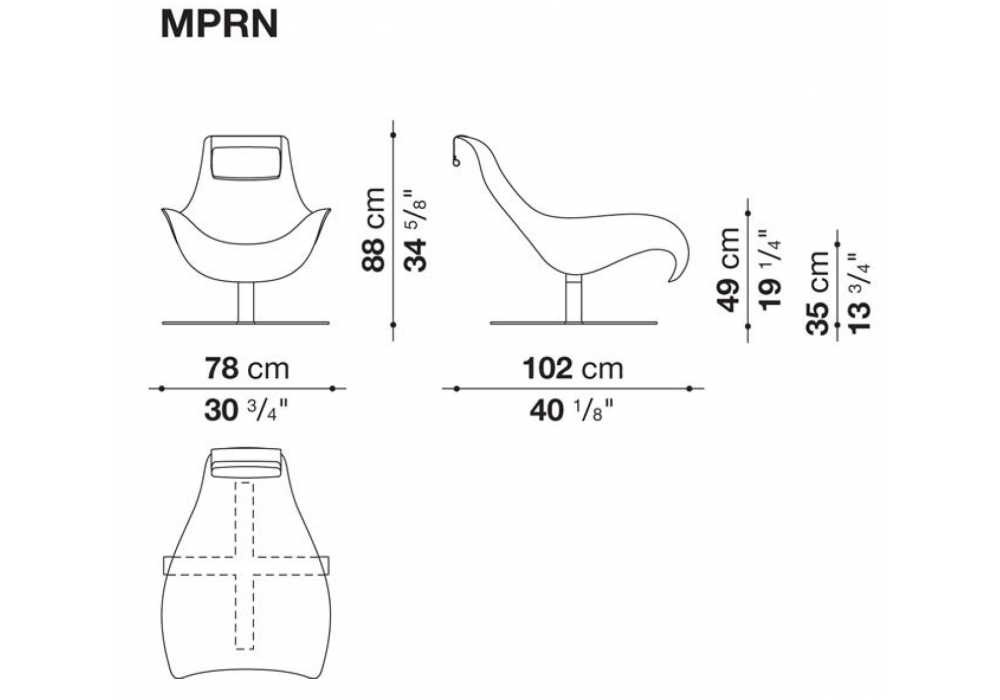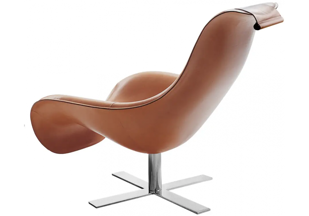 Mart conçu par Antonio Citterio pour B&B Italia est un fauteuil pivotant avec base cruciforme en acier laminé et profilés en aluminium peint ou chromé. Revêtement en cuir ou en peau avec appui-tête à contrepoids en acier chromé ou poli dans différentes finitions. Coussin d'appui-tête contrasté disponible sur demande.