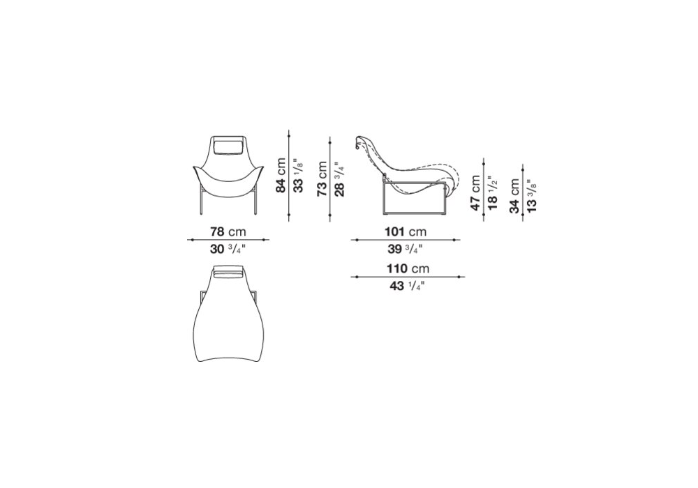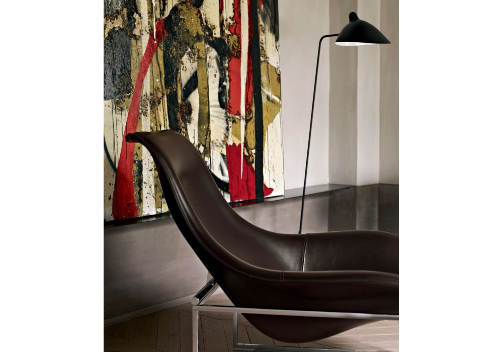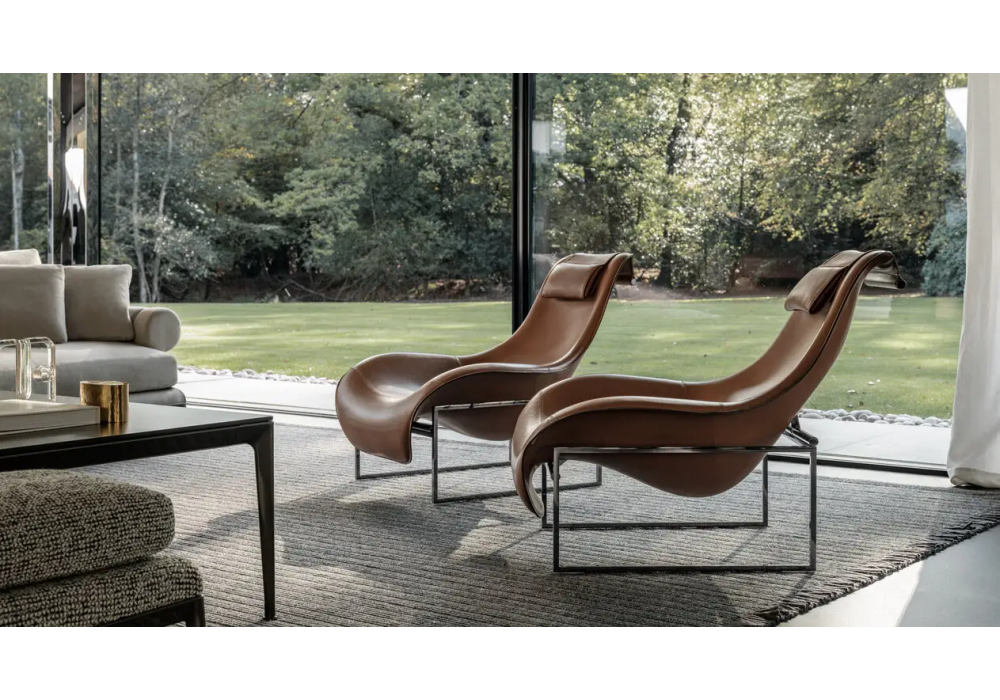 Mart conçu par Antonio Citterio pour B&B Italia, est un fauteuil relax à mouvement de basculant avec structure en acier chromé ou peint. Revêtement en cuir ou en peau. Disponible avec ou sans coussin d'appui-tête, avec contrepoids d'appui-tête dans les mêmes finitions que la structure.