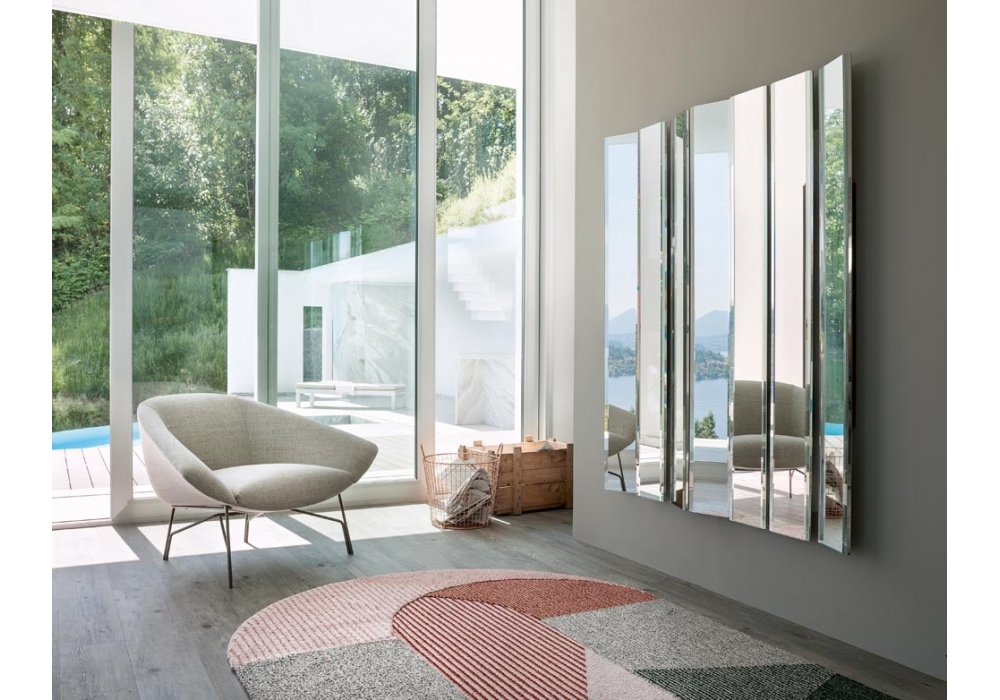 Lennox designed by Gordon Guillaumier for Lema is a lounge chair with structure made of metal and upholstery in fabric, eco-leather, or leather. This refined design is inspired to an open corolla, suspended into the void, on the light structure in metal in bronze colour, which turns into an idea for an elegant and discreet armchair for conversations. A private, soft and seductive nest for reading and listening to fine music. A detail that also inspired the name.