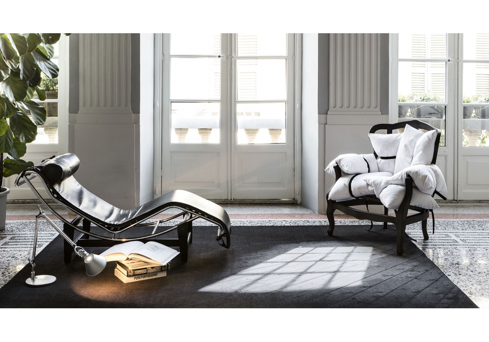 7Pillows conçu par Marcantonio pour Mogg est un fauteuil en hêtre massif, disponible avec une structure de couleur marron ou noire. Complet avec 7 coussins en duvet avec revêtement amovible.