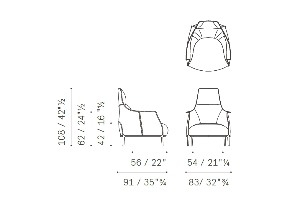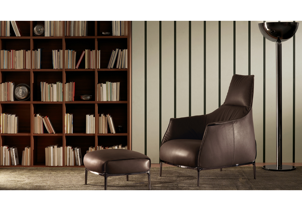 Archibald A, conçu par Jean-Marie Massaud pour Poltrona Frau, est un fauteuil composé de quatre pieds en fonte d'aluminium reliés à une structure en acier tubulaire, disponible dans les finitions suivantes : gris gunmetal, bruni et titane. Il peut être revêtu de cuir ou de tissu. Coutures contrastées sur les bords et sur les surfaces extérieures du revêtement en cuir. Coutures ton sur ton pour la version en tissu.