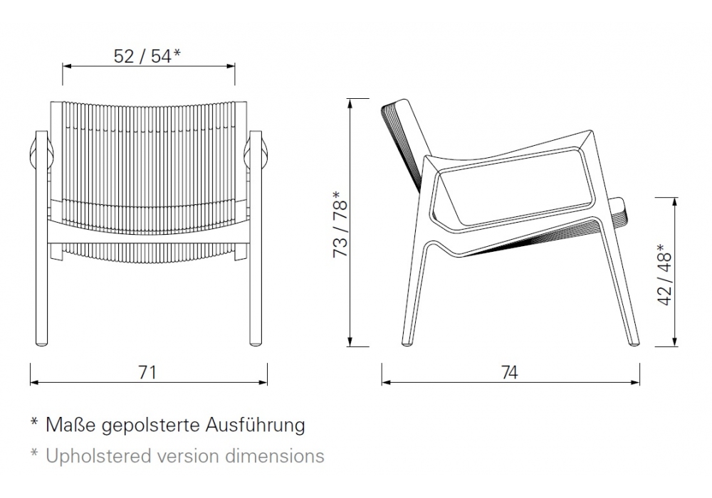Euvira conçu par Jader Almeida pour ClassiCon est un fauteuil avec structure en chêne massif naturel, teinté brun ou noir. Dossier et assise en polyuréthane avec sangles en caoutchouc et revêtement en cuir ou tissu au choix. Disponible en différentes finitions.