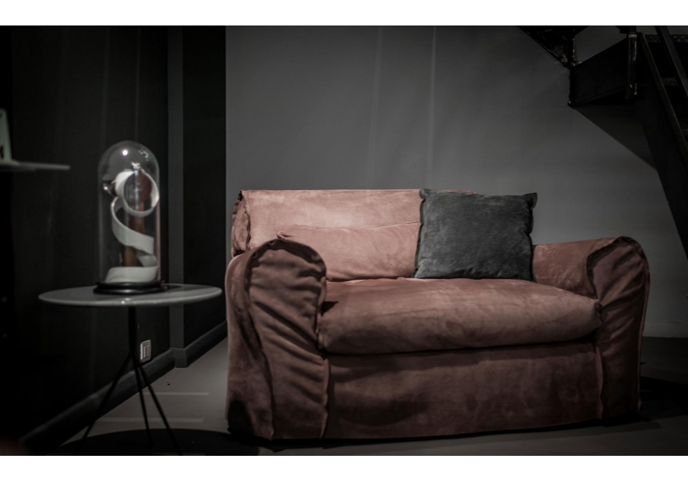Housse Extra signé par Paola Navone pour Baxter est un fauteuil avec revêtement en cuir souple. Pieds en hêtre teinté noyer.
