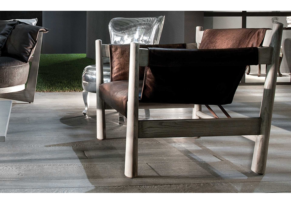 Bolivar conçu par Roberto Lazzeroni pour Baxter est un beau fauteuil avec structure en châtaignier sablé et vieilli. Rembourrage en mousse de polyuréthane avec fibre acrylique 100% polyester. Siège en cuir structuré et soutenu intérieurement par un panneau ABS.