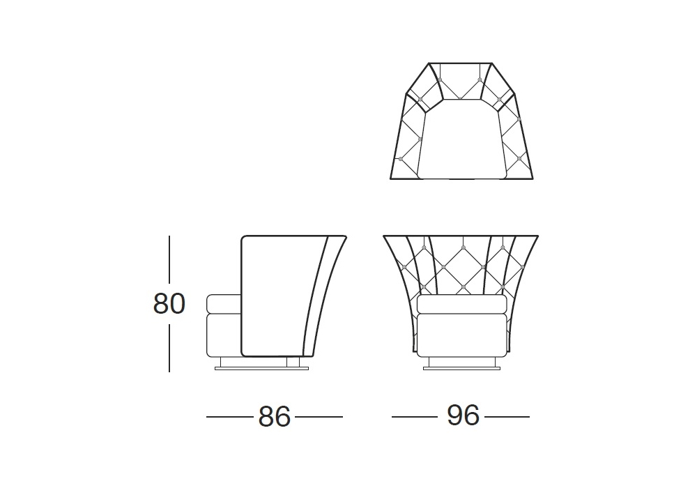 Saki conçu par Silvia Musetti pour Longhi est un fauteuil avec structure en bois avec bandes élastiques, recouvert en mousse de polyuréthane. Coussin de siège en plume d'oie stérilisée avec insert en mousse de polyuréthane multi-épaisseur. La housse intérieure a un motif "Capitonnè", avec des boutons en couleur unie. Base métallique disponible en différentes finitions. Étant donné le traitement spécial, les rêvetements en cuir comme en tissu, ne sont pas amovibles.