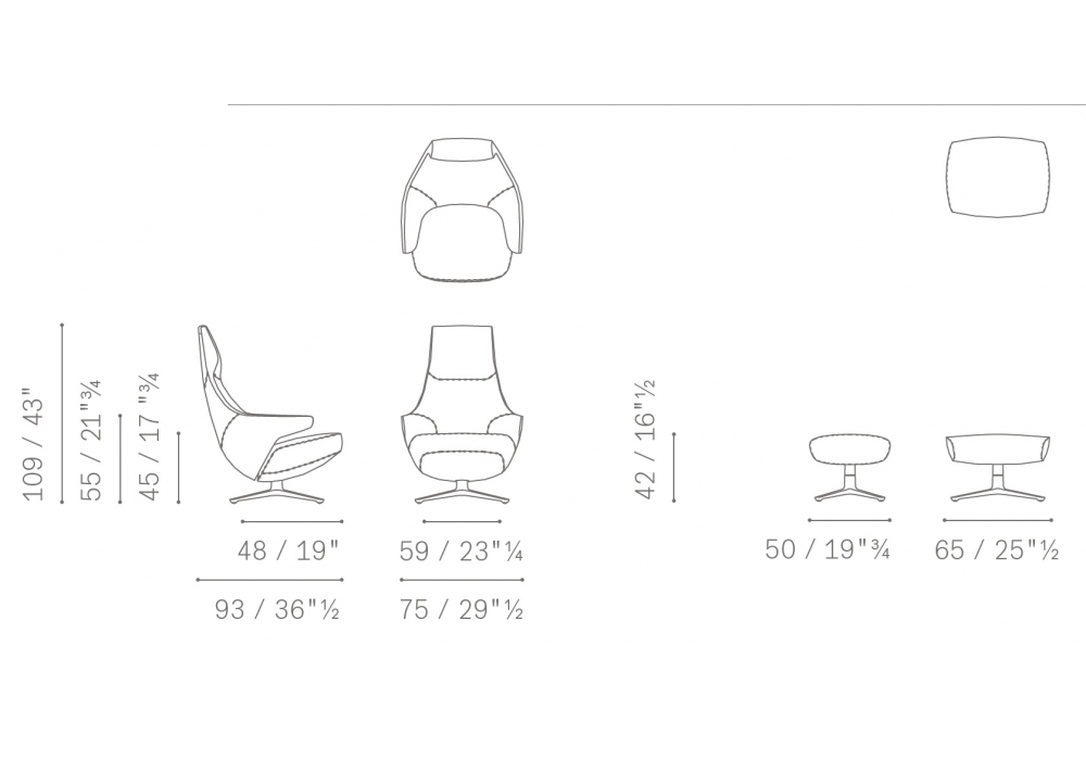 Jay Lounge conçu par Jean-Marie Massaud pour Poltrona Frau est un fauteuil avec basen acier moulu sous pression, qui permet la rotation à 360° avec retour automatique dans la position de départ. La structure de l’assise est en polyuréthane rigide obtenu par moulage, avec des inserts en métal. La base pivotante à quatre rayons en aluminium est disponible dans les finitions grenaillé – bruni et brillant. Revêtement en cuir Pelle Frau® avec des coutures raffinées qui dessinent la surface.