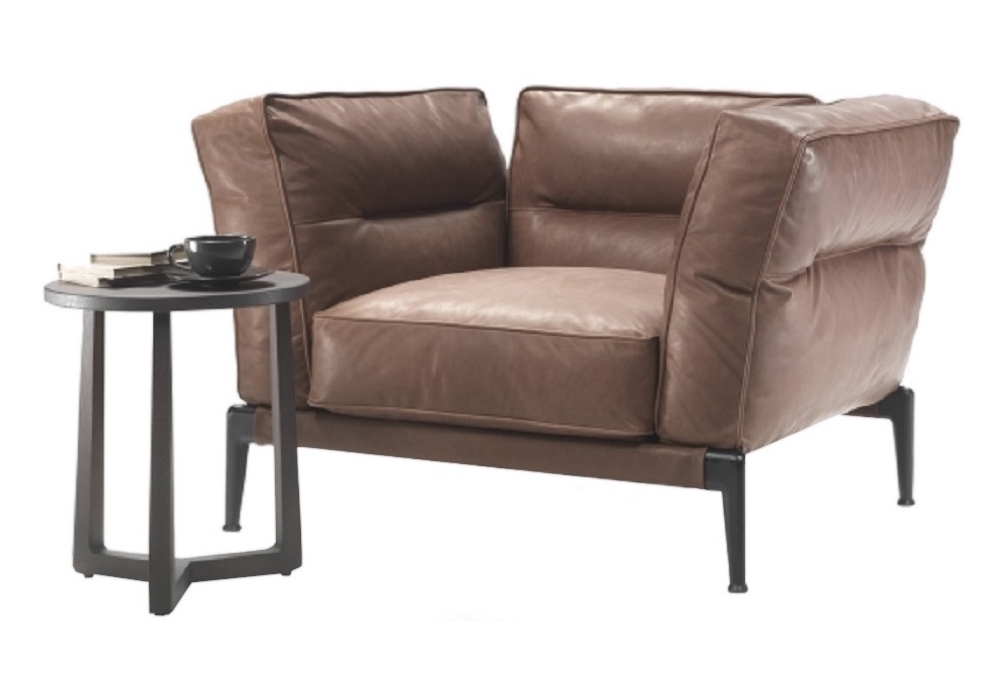 Adda conçu par Antonio Citterio pour Flexform est un beau fauteuil avec structure en métal et coussins généreusement rembourrés avec des plumes d'oie bordées par une couture épaisse en relief. Rêvetement amovible en tissu ou cuir. Pieds en métal disponibles en différentes finitions.