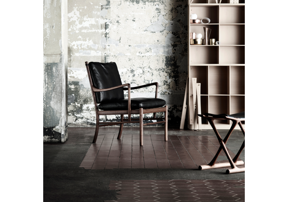 OW149 Colonial Chair conçu par Ole Wanscher pour Carl Hansen & Søn est un fauteuil avec structure en chêne massif ou noyer en différentes finitions. Assise et dossier rembourrés avec revêtement en tissu ou en cuir.