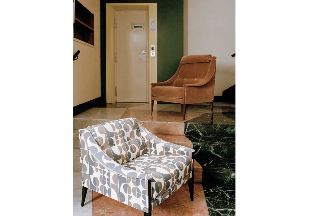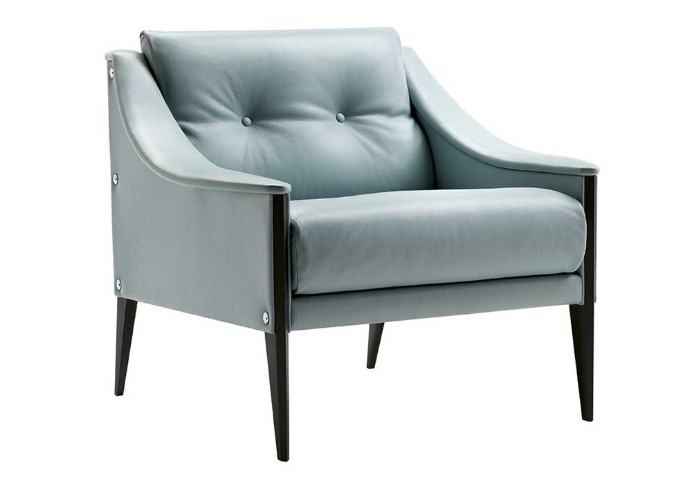 Dezza 24, conçu par Gio Ponti pour Poltrona Frau, est un fauteuil avec structure portante en bois de hêtre séché et rembourrage en mousse de polyuréthane. Les pieds sont disponibles dans les finitions suivantes : frêne laqué blanc ou noir avec veines apparentes, placage noyer Canaletto. Revêtement en cuir ou tissu Pelle Frau®.