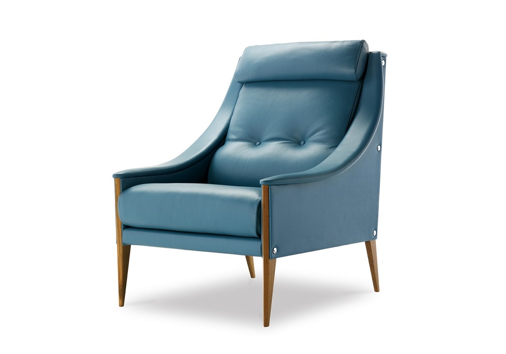 Dezza 48, conçu par Gio Ponti pour Poltrona Frau, est un fauteuil doté d'un appui-tête en duvet d'oie intégré au dossier, d'une structure portante en bois de hêtre séché et d'un rembourrage en mousse de polyuréthane. Les pieds sont disponibles dans les finitions suivantes : frêne à pore ouvert laqué blanc ou noir, placage noyer Canaletto. Sellerie en cuir ou tissu Pelle Frau®.