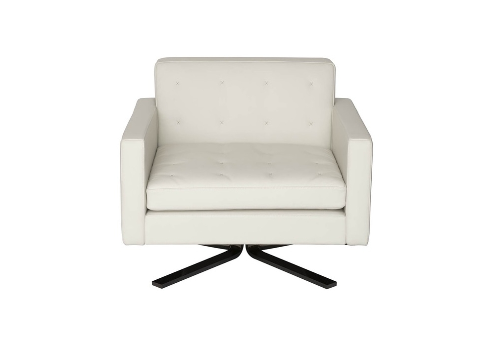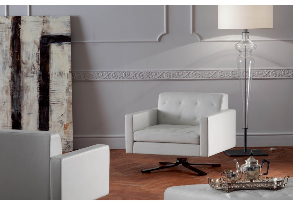 Kennedee, conçu par Jean-Marie Massaud pour Poltrona Frau, est un fauteuil pivotant avec une base à 4 branches en acier étiré avec une finition gris canon. Le mécanisme de pivotement permet une rotation à 90° et un retour automatique à la position de départ. Revêtement en cuir pelle Frau®.