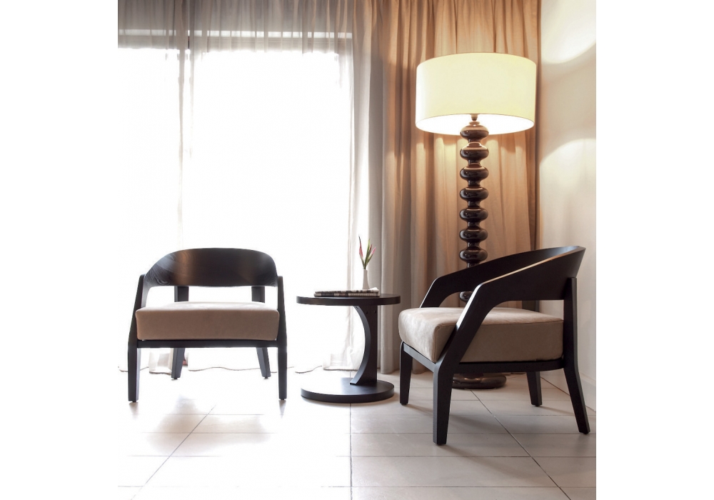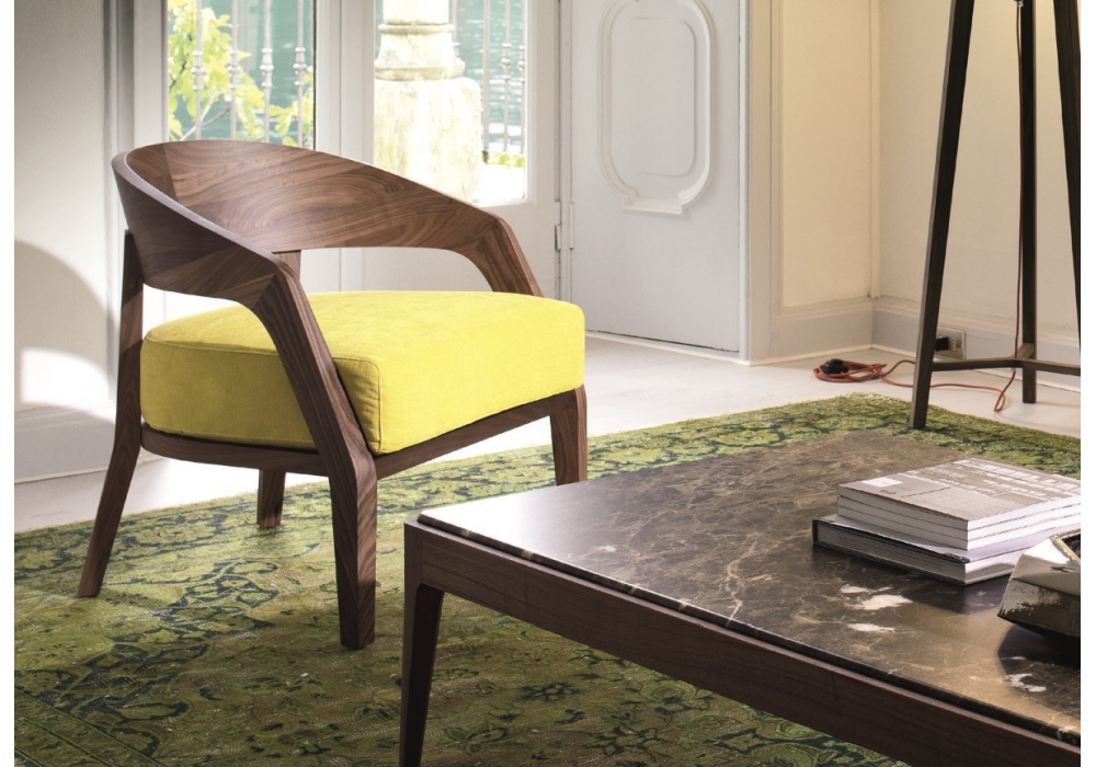 Alba conçu par M. Walraven pour Porada est un fauteuil avec structure en noyer canaletta massif, frêne ou laqué mat disponible en différentes finitions. Revêtement en tissu ou en cuir.