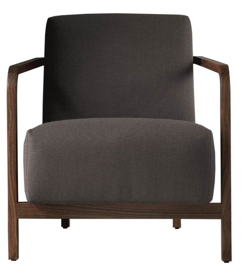 Gilda conçu par T. Colzani pour Porada est un fauteuil avec structure en noyer canaletta massif ou laqué mat pore fermé disponible en différentes finitions et déhoussable revêtement en tissu ou en cuir.