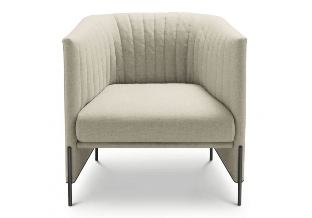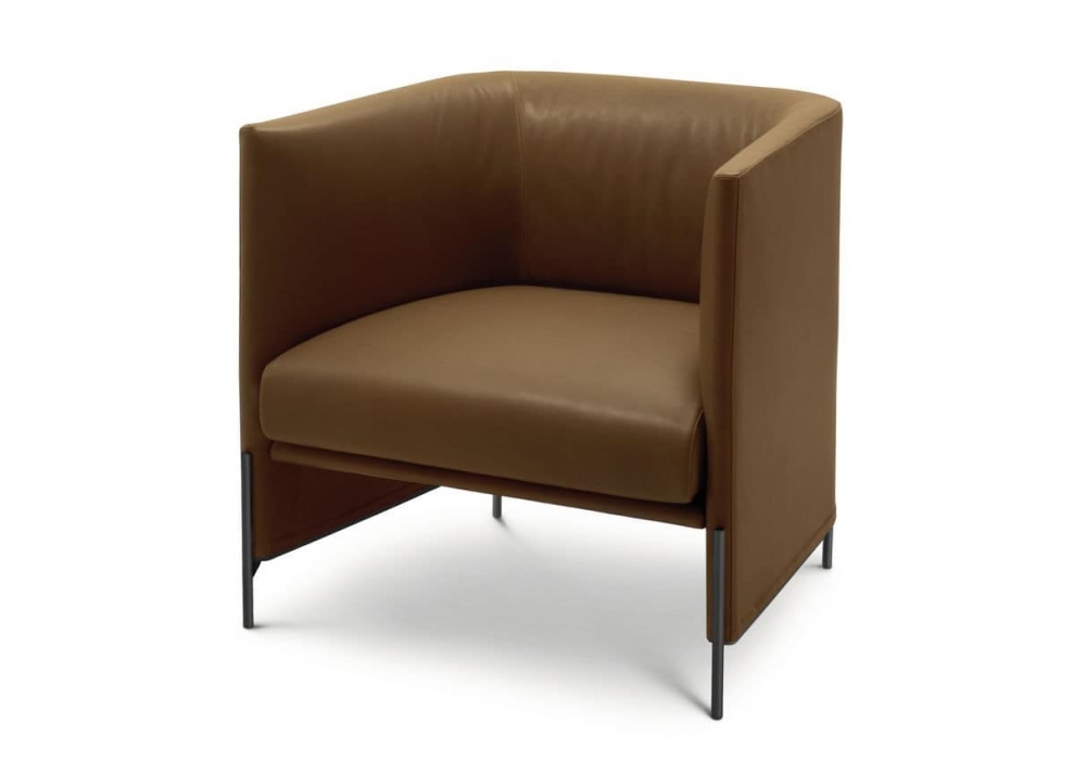 Algon conçu par Luca Nichetto pour Arflex est un fauteuil avec base en métal. Coussin d'assise en polyuréthane profilé à densité différenciée / fibre polyester. Revêtement en tissu ou cuir.