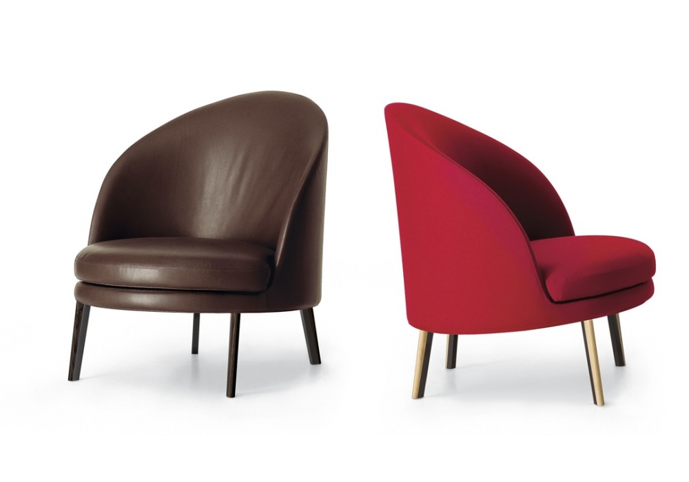 Jim conçu par Claesson Koivisto Rune pour Arflex est un fauteuil avec base en métal laqué, rembourrage en mousse de polyuréthane moulée / fibre de polyester et revêtement en tissu ou cuir. Base également disponible avec profils en bois.