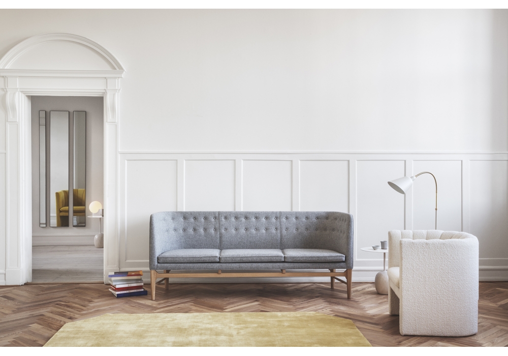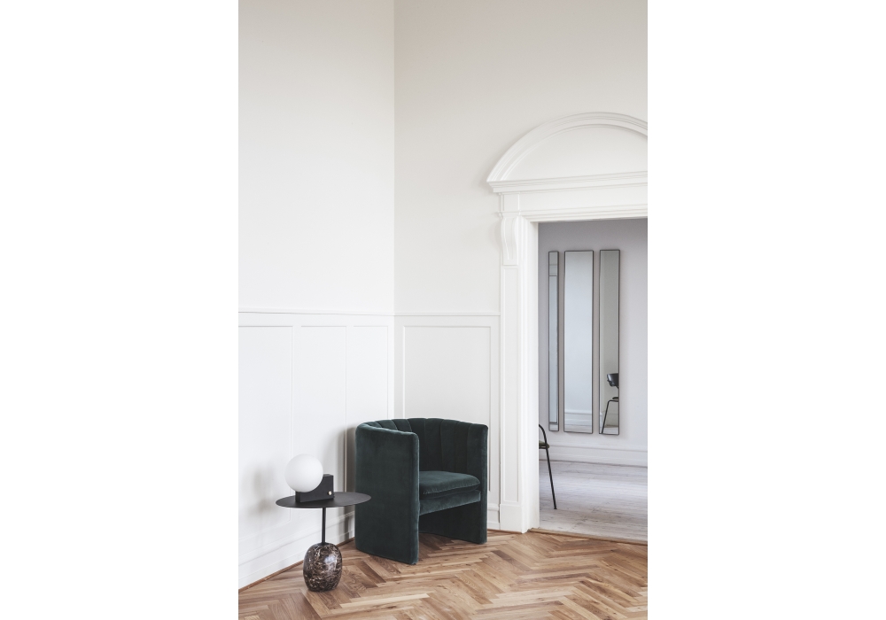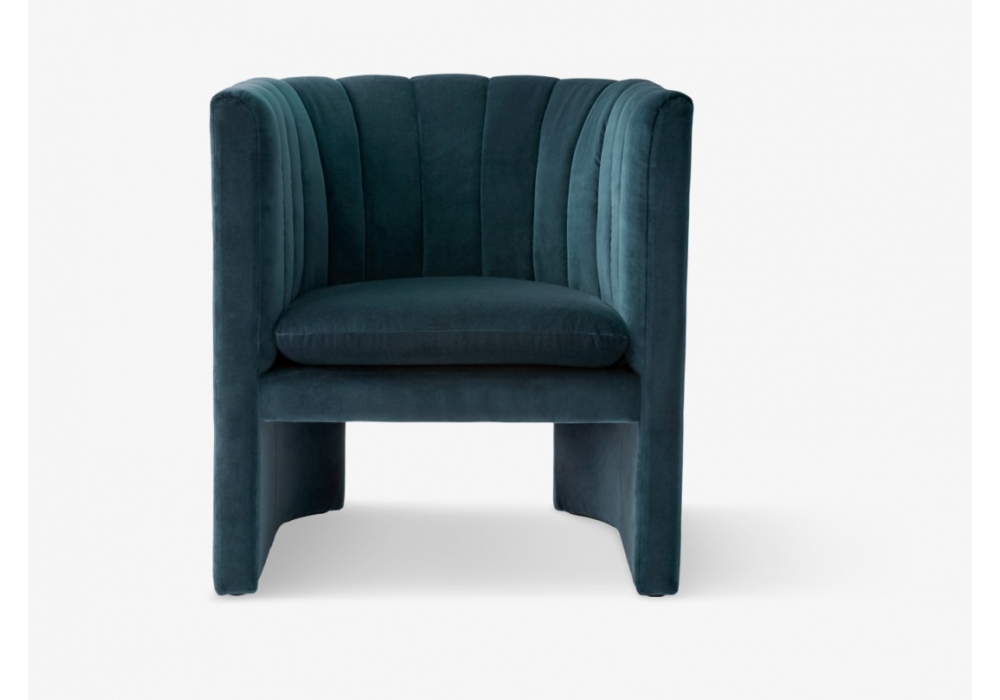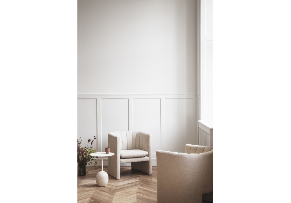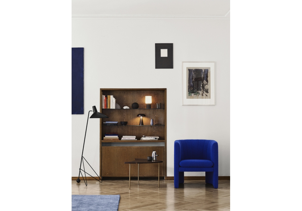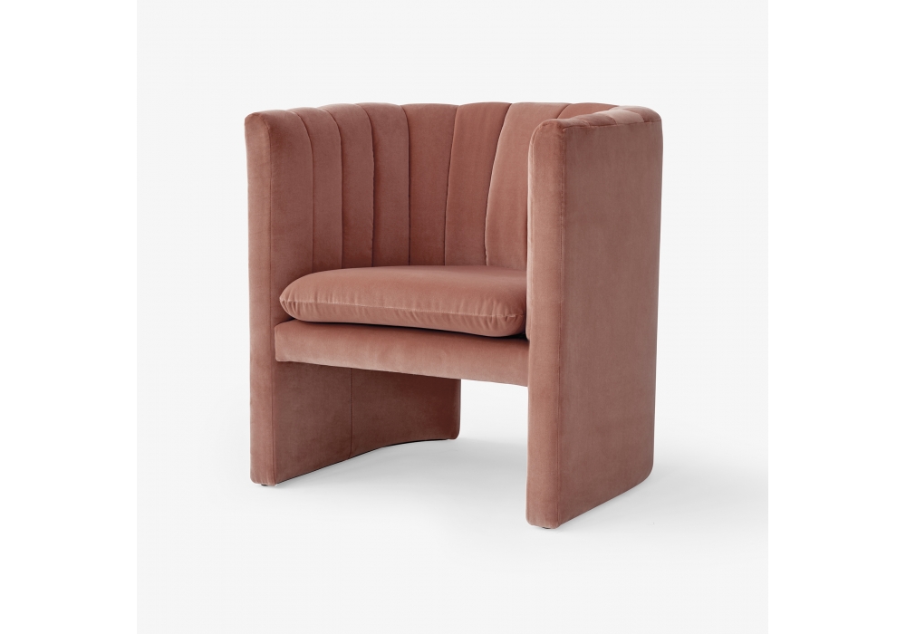 Loafer SC23 conçu par Space Copenhagen pour &Tradition est un fauteuil réalisé avec du bois, mousse HR, l'ouate de polyester et de la tapisserie d'ameublement en tissu. Livré avec des patins en feutre.