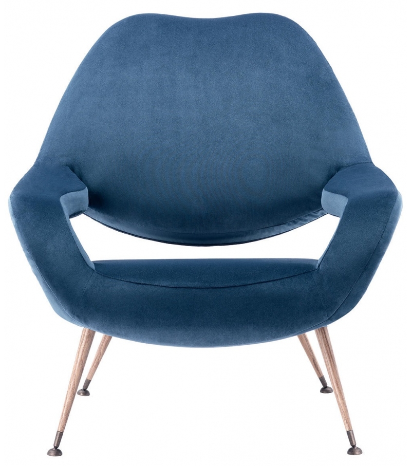 DU 55, conçu par Gastone Rinaldi pour Poltrona Frau, est un fauteuil avec structure portante en acier et rembourrage en mousse de polyuréthane moulée. Les pieds coniques en acier sont disponibles en trois finitions : plaqué frêne teinté teck avec finition antique et capuchons en laiton ; revêtement texturé noir, avec effet plissé, avec capuchons noirs ; poli chromé avec capuchons chromés. Revêtement en cuir ou tissu Pelle Frau®.