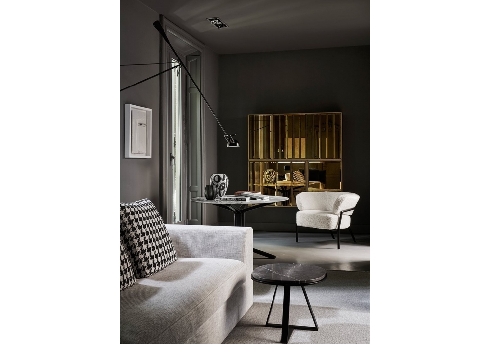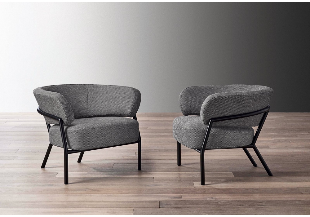 Nanì conçu par Andrea Parisio pour Meridiani est un fauteuil avec structure en métal verni, rembourrage en polyuréthane à densités différenciées et fibre polyester de polyester et revêtement en tissu ou cuir.