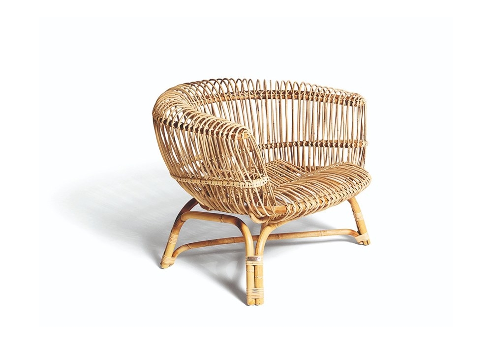 Silvia conçu par P. Tilche / Bonacina historical archive pour DePadova est un fauteuil avec structure en rotin, armure en rotin et reliure en écorce de rotin. Pieds en thermoplastique. Disponible en finition laquée naturelle ou rouge.