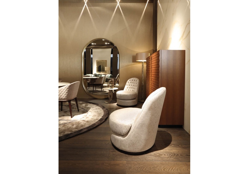 Leila conçu par Angelo Cappellini Staff pour Opera Contemporary est un fauteuil au design élégant avec revêtement disponible en tissu ou cuir. Base ronde en bois, disponible en différentes finitions.