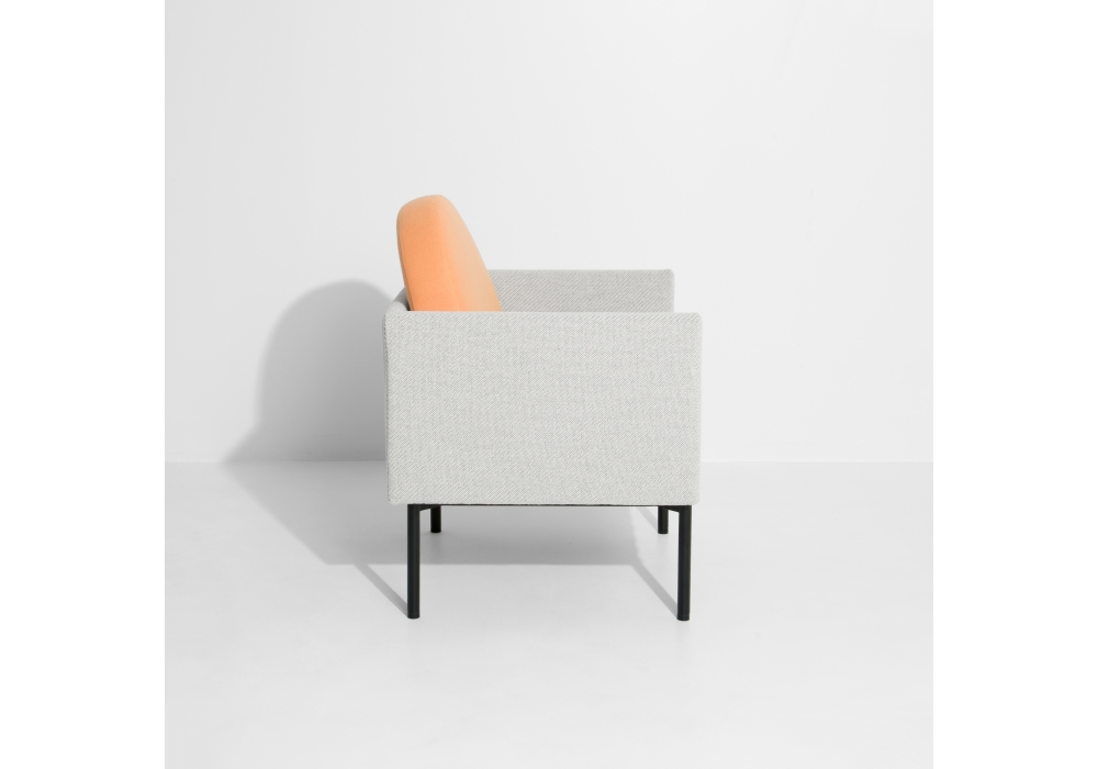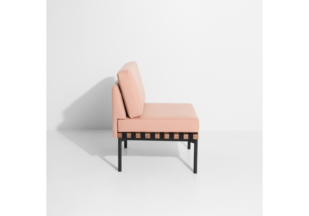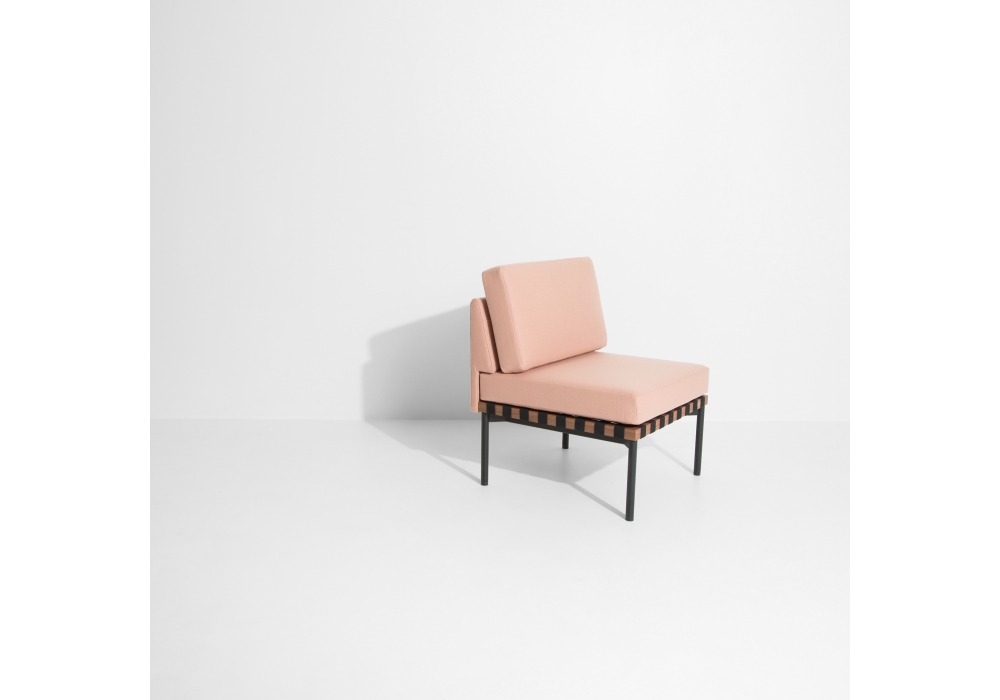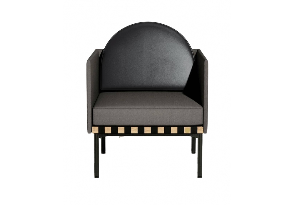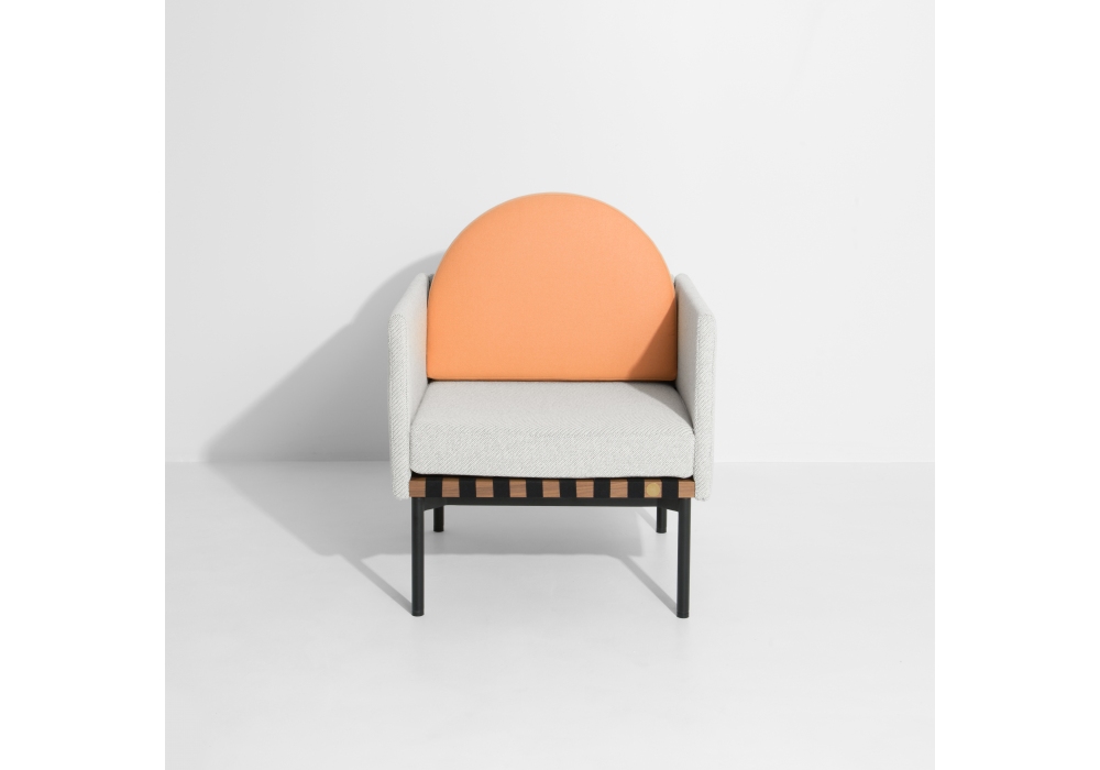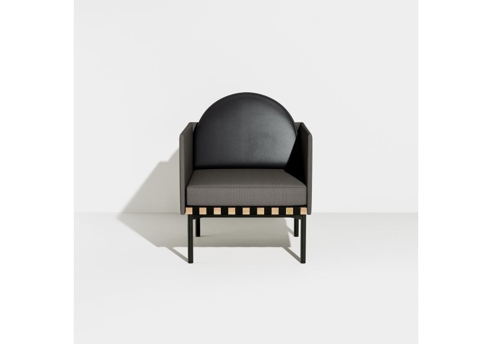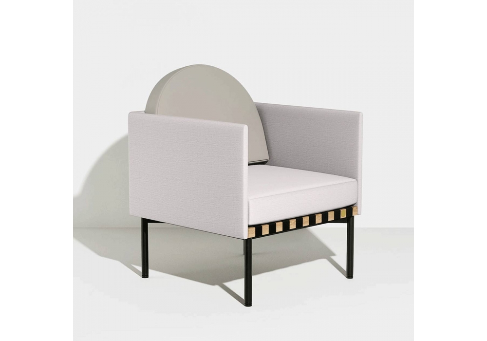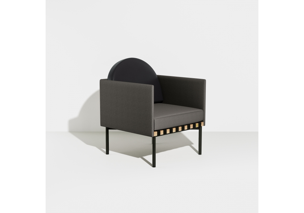 Grid conçu par Pool pour Petite Friture est un fauteuil avec ou sans accoudoirs réalisé avec une structure en bois, une base en acier et un revêtement en différents types de tissus. Coussin rond recouvert de tissu ou de cuir.