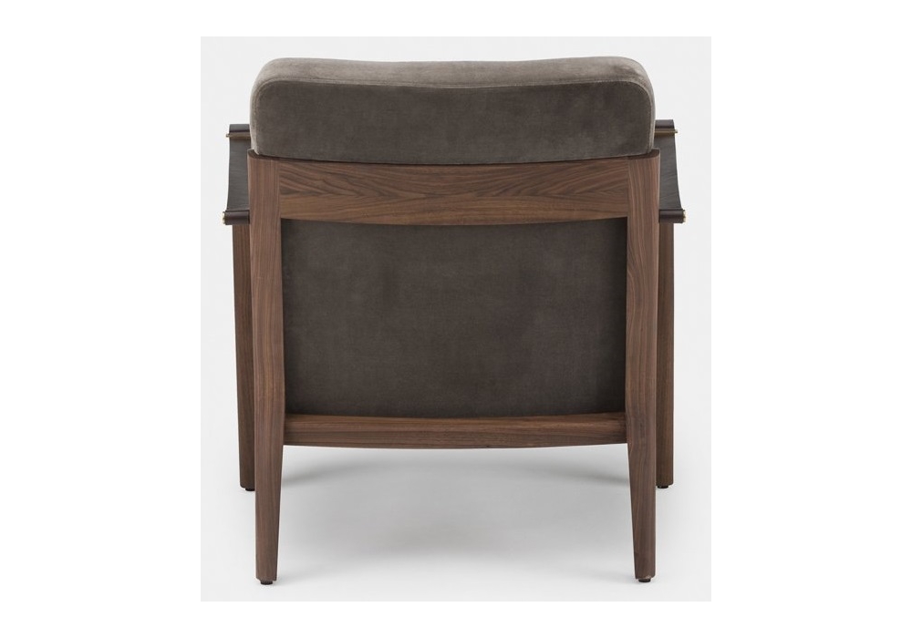 Capo conçu par Neri & Hu pour De La Espada est un fauteuil avec revêtement en tissu ou cuir et structure en bois disponible en différentes finitions. Accoudoirs en cuir noir ou marron avec détails en laiton.