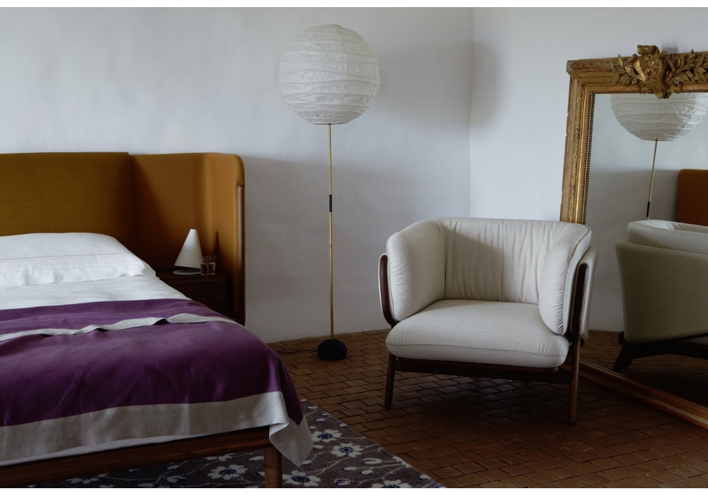 Stanley conçu par Luca Nichetto pour De La Espada est un fauteuil avec revêtement en tissu ou cuir et structure en bois disponible en différentes finitions.