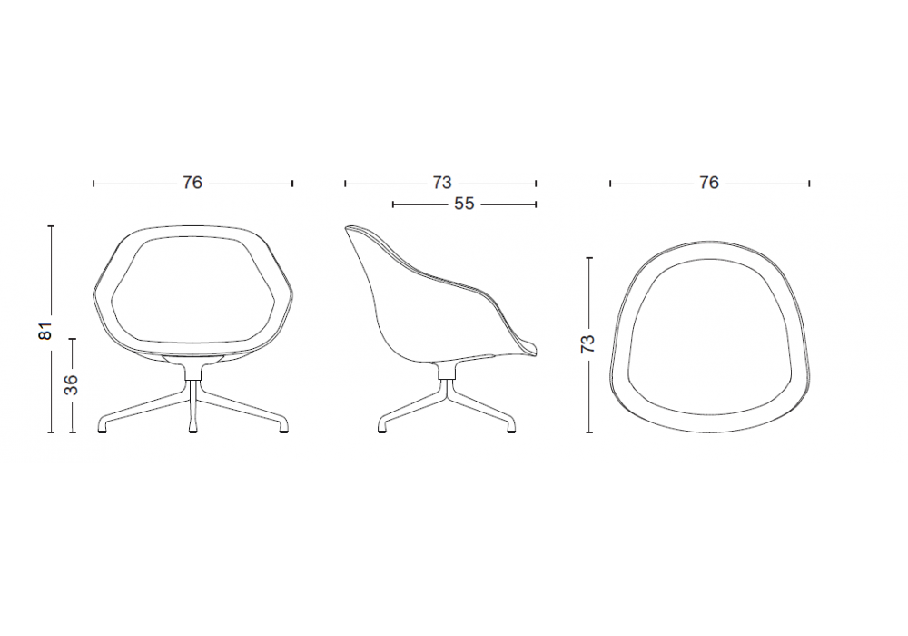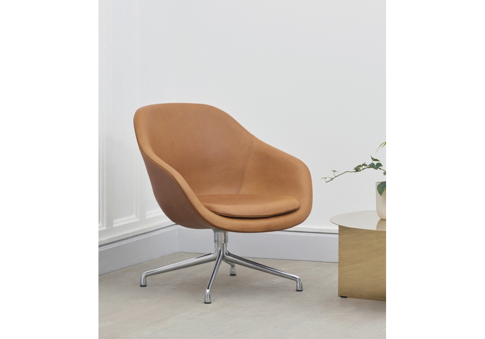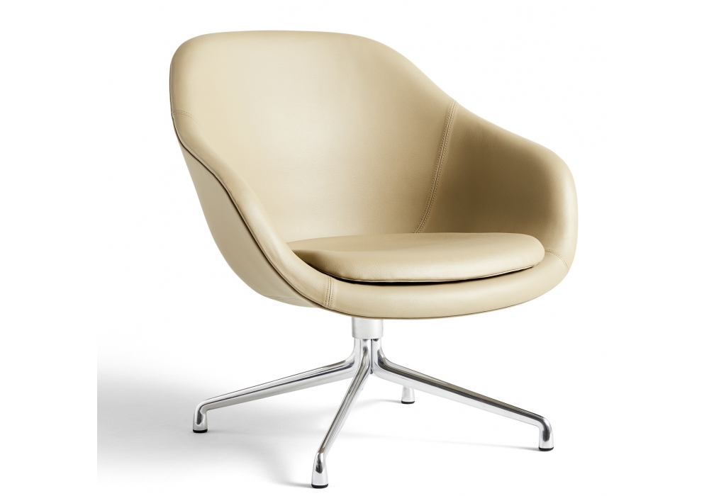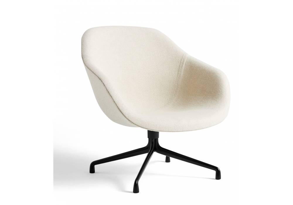 About a Lounge Chair AAL 81 conçue par Hee Welling & Hay pour Hay est une fauteil avec base pivotante à 4 branches en fonte d'aluminium poli ou thermolaqué noir et coque en mousse moulée avec structure interne en acier. Coussin de siège amovible en option en mousse de polyuréthane moulée et monté avec du velcro. Disponible en différents revêtements.