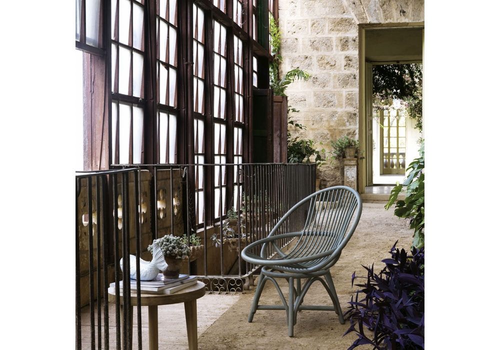 Radial conçu par Studio Expormim est un fauteuil réalisé en rattan. Disponible en différentes finitions. Coussin optionnel recouvert de cuir naturel, de faux cuir ou de pure laine vierge.