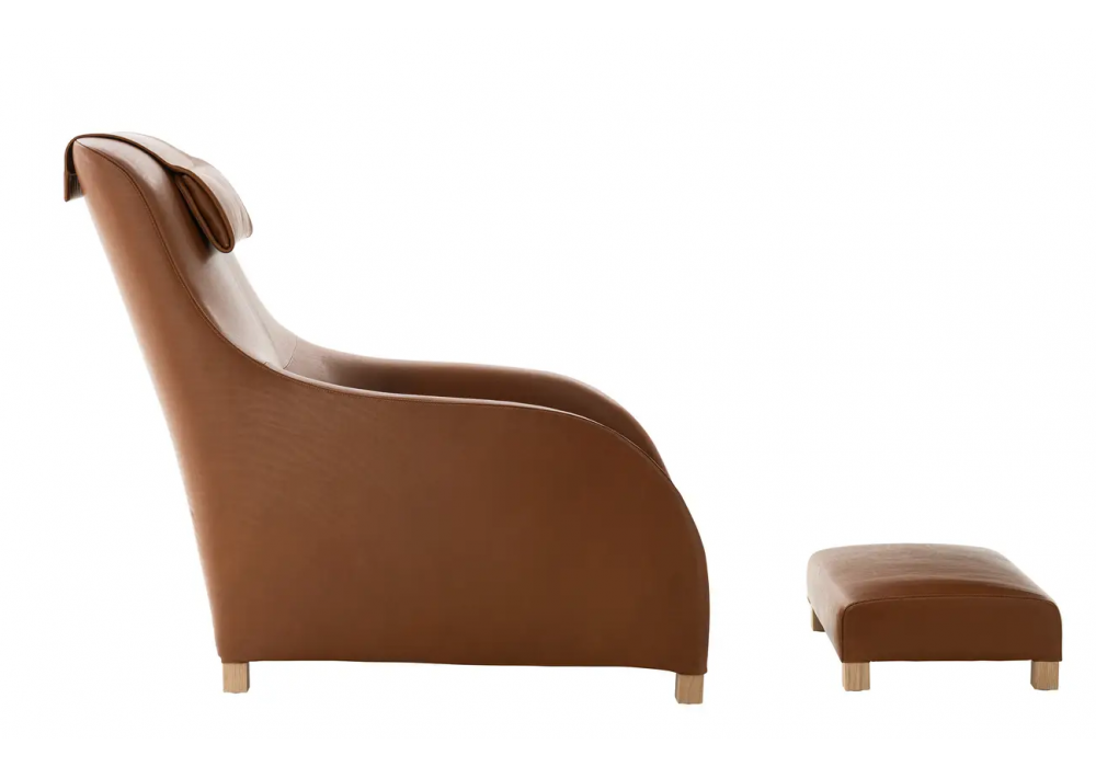 Kalos conçu par Antonio Citterio pour Maxalto est un fauteuil avec pieds en chêne noir brossé recouverts par la doublure lâche qui recouvre le fauteuil. Il est possible d'ajouter le coussin d'appui-tête. Revêtement amovible en tissu ou en cuir. Disponible également dans la version pivotante, avec ou sans repose-pieds.