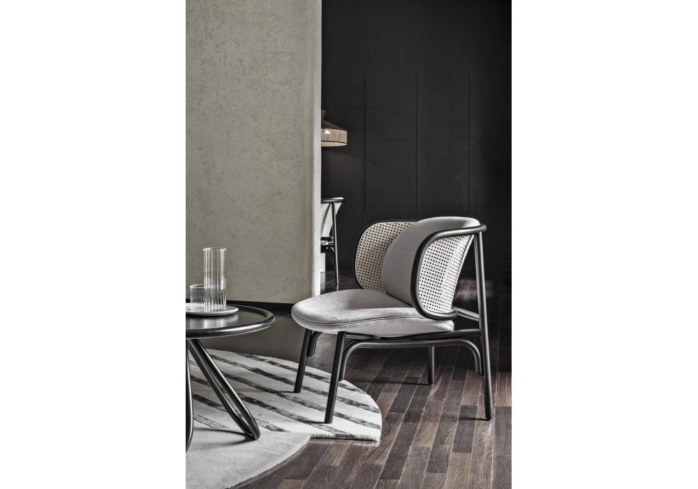 Suzenne conçu par Chiara Andreatti pour Gebrüder Thonet Vienna est un fauteuil avec structure en bois courbé et paille de Vienne. L'assise se distingue par la légère structure en bois massif de hêtre, une combinaison de lignes droites et courbes pour soutenir le dossier en paille de Vienne. Revêtement disponible en différentes finitions. Une pure expression de la qualité de fabrication de GTV.
