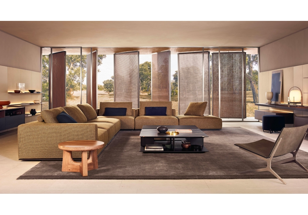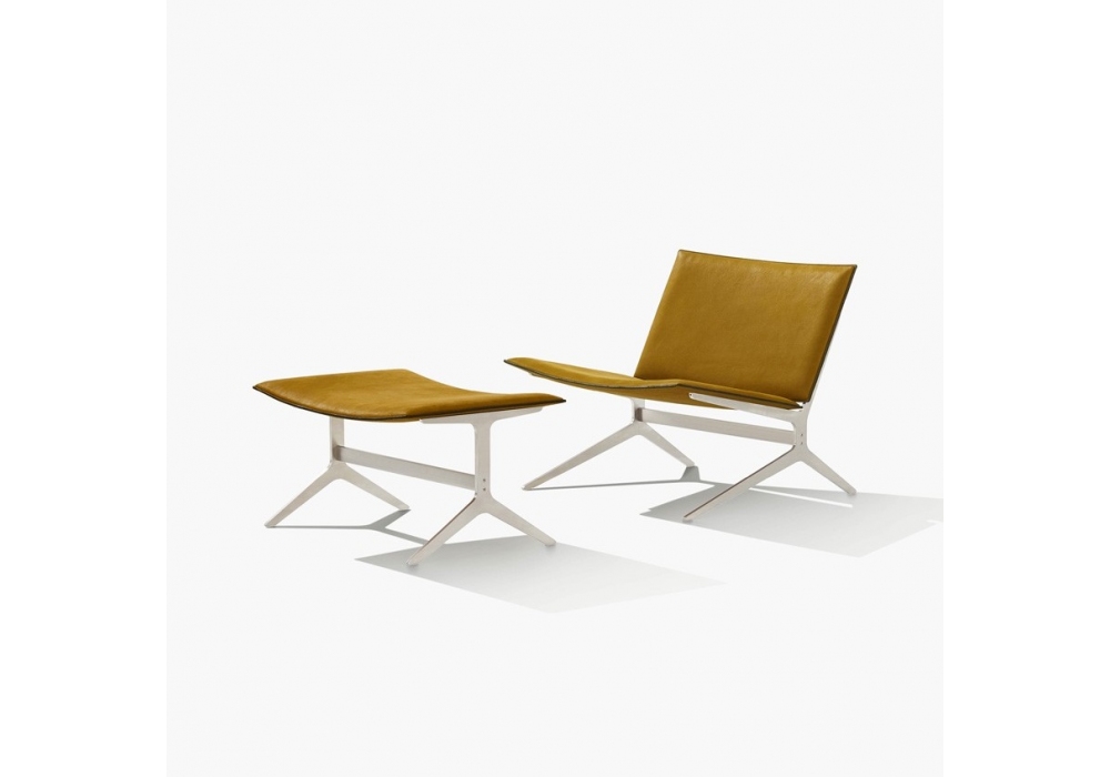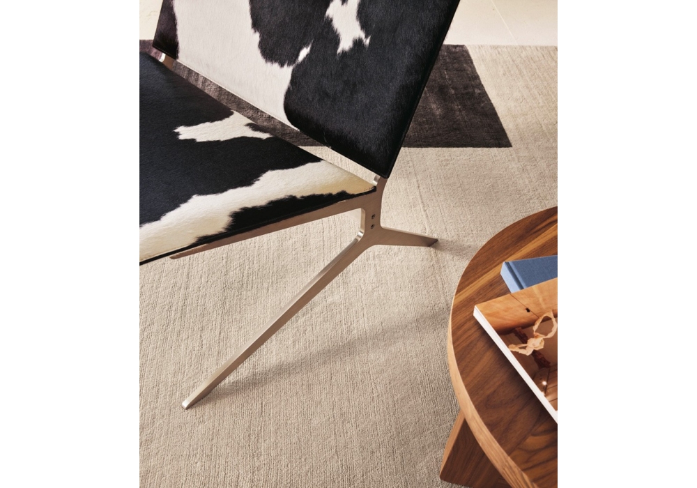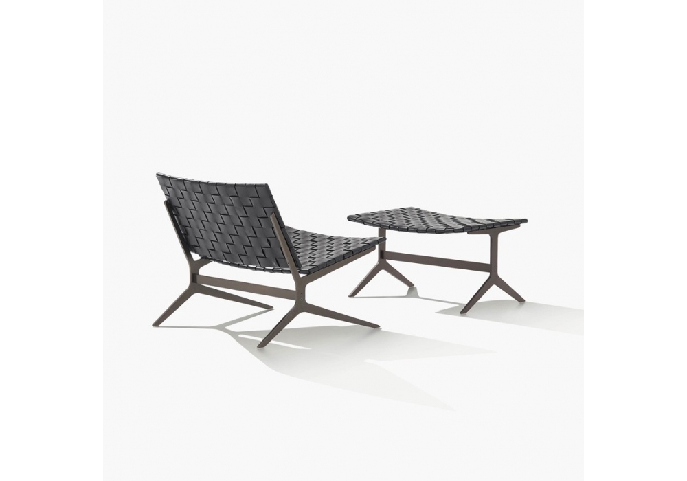 Kay Lounge conçu par Jean-Marie Massud pour Poliform, est un fauteuil avec structure en acier satiné/peint. Assise et dossier en polyuréthane souple moulé en une seule pièce ou avec sangles élastiques (cuir tressé). Revêtement en cuir, cuir de vachette, cuir de vachette tressé ou cuir Hairy.