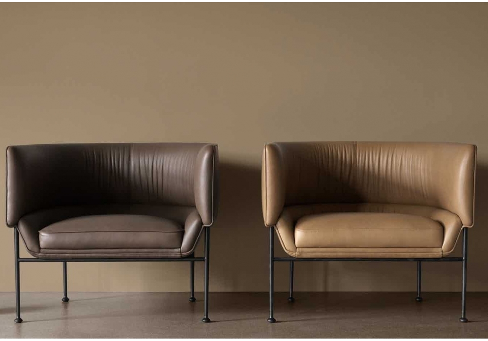 Collar conçu par 365 North pour wendelbo est un fauteuil avec des pieds en acier bruni noir et un rembourrage en mousse haute résilience. Revêtement disponible en différentes finitions.